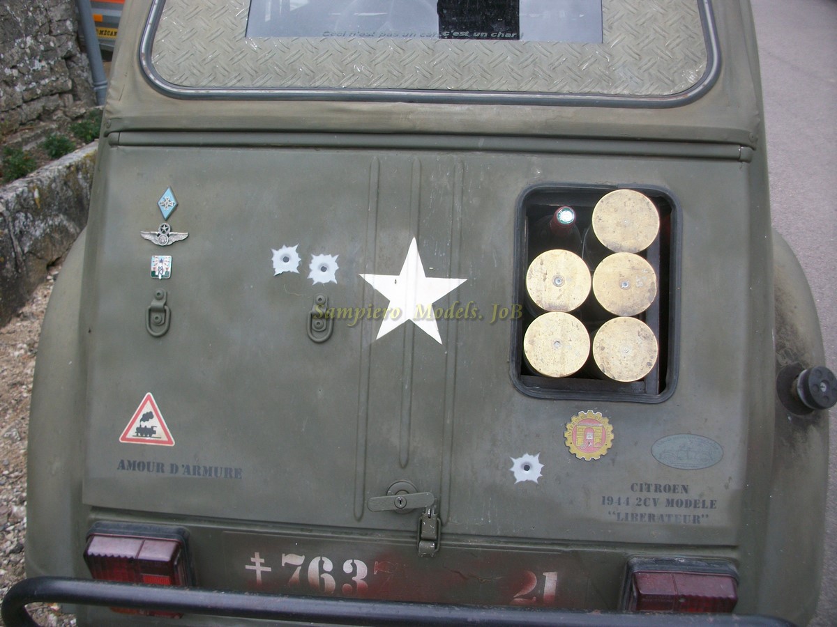 La nostalgie du monde militaire , du passé et du patriotisme à donner des idées à son propriétaire même si certaines sont paradoxales ne serait ce que la croix de lorraine et l'étoile US.