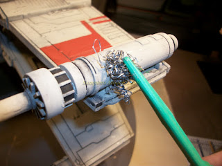 Revell à pris le soin de vieillir le X-Wing avec un semblant de frottement , d'usure, d'éraillure.
