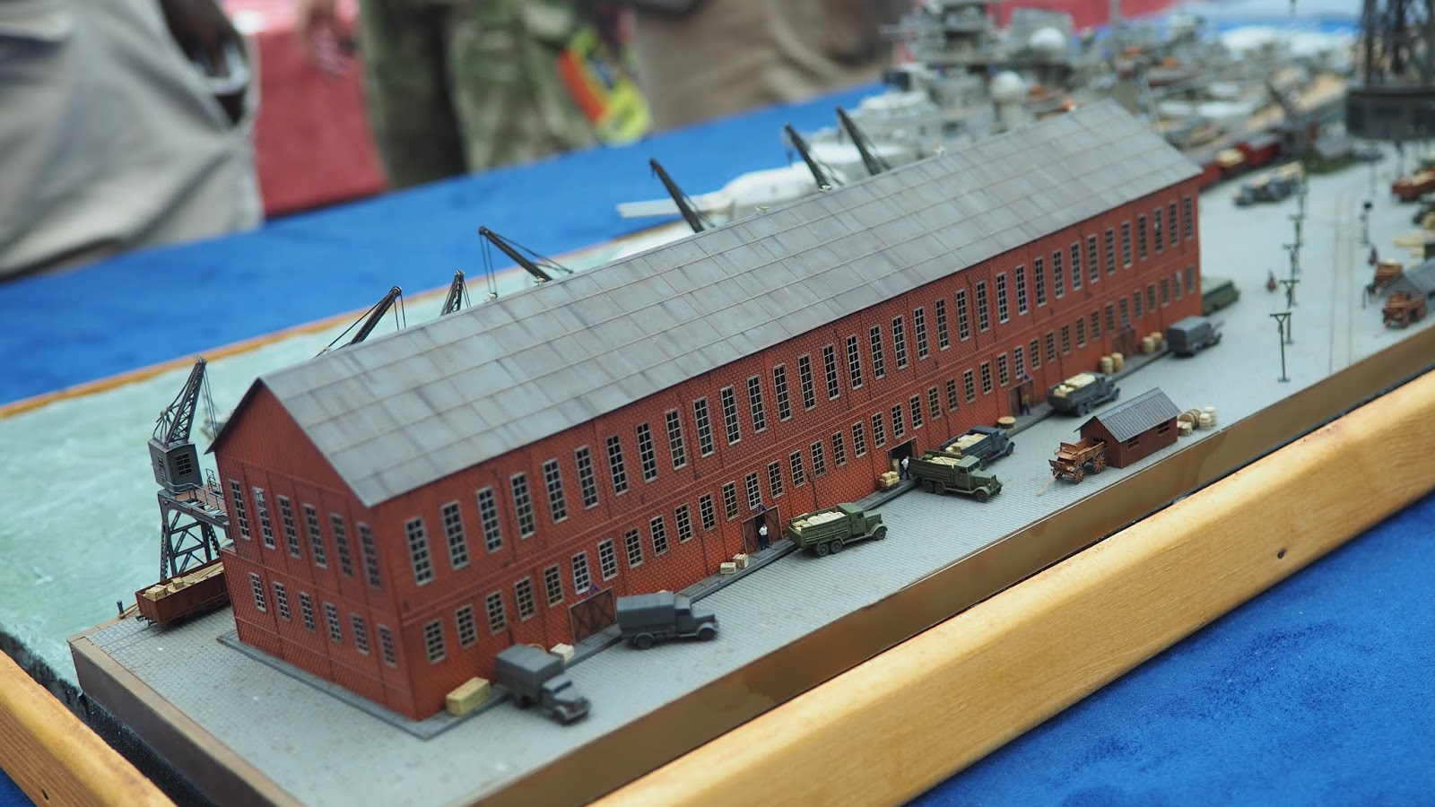 Quand aux navires ils subissent des modifications importantes sur toutes les surfaces , celles ci sont remplacées par et avec les rajouts de photo-découpe ( parois,portes,tourelle, etc ), il était en train de faire un bateau moderne russe et nous expliquait le travail comment il refaisait une paroi en plastique.